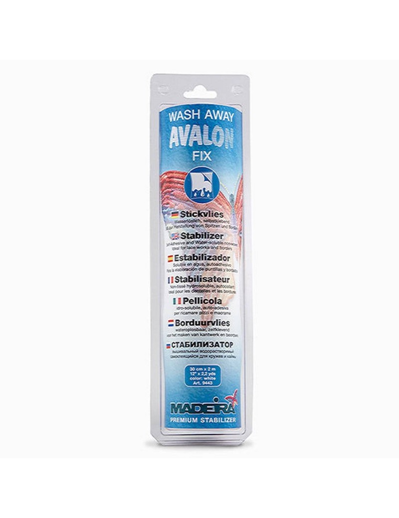 Avalon Fix - non-tissé hydrosoluble - autocollant27,5cm x 1mAvalon Fix est idéal pour les dentelles et les bordures.